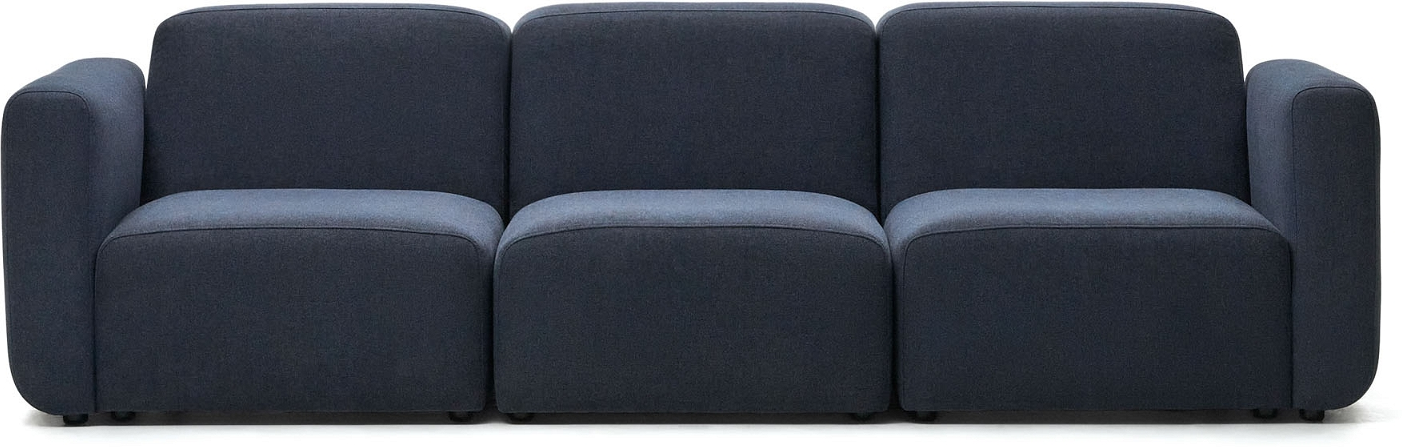 Kave Home præsenterer stolt Neom. En 3-personers modulsofa. Der forener både moderne design og funktionalitet i et nøje udvalgt blåt interlock-vævet stof. Sofaen. Som er en del af Neom-serien. Er ikke blot en siddeplads Men også en statement-piee. Der ti