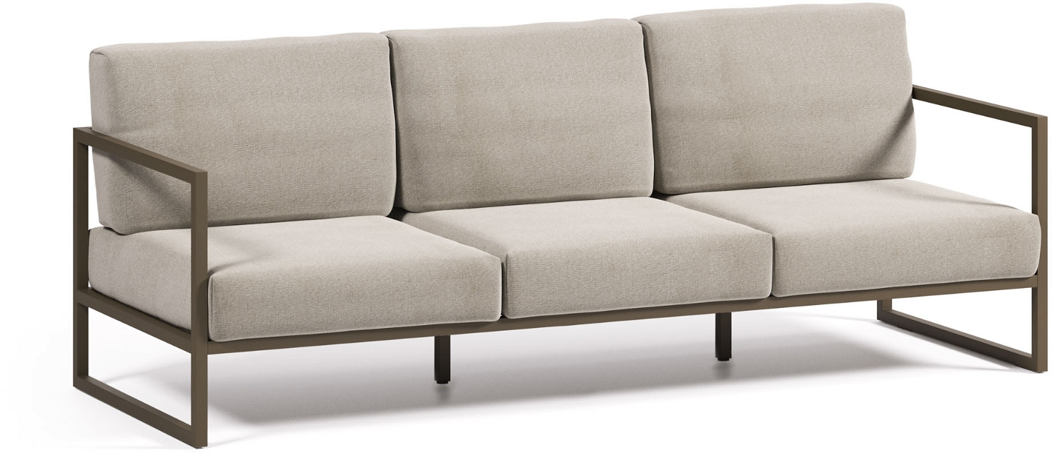 Kave Home præsenterer den minimalistisk designede Comova 3-personers sofa. Som en del af deres moderne og nordiske stilserie. Denne elegante udendørs sofa. Fremstillet af holdbart aluminium og klædt i gråt Crevin-stof. Kombinerer både funktionalitet og st