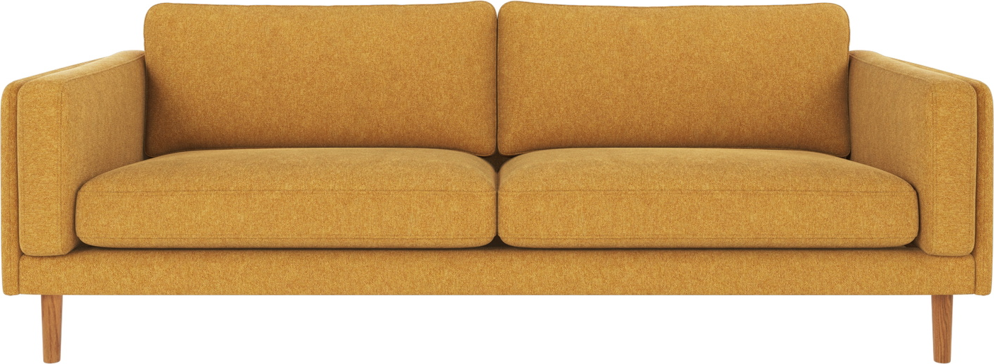 Rowico Braden 3-personers sofa i den varme gul nuance kombineret med ben i naturlig eg er et oplagt valg til hjemmets samlingspunkt. Serien Braden forener tidløs skandinavisk elegance med kompromisløs komfort. Stellet i omfattende træ. Krydsfiner og spånplad