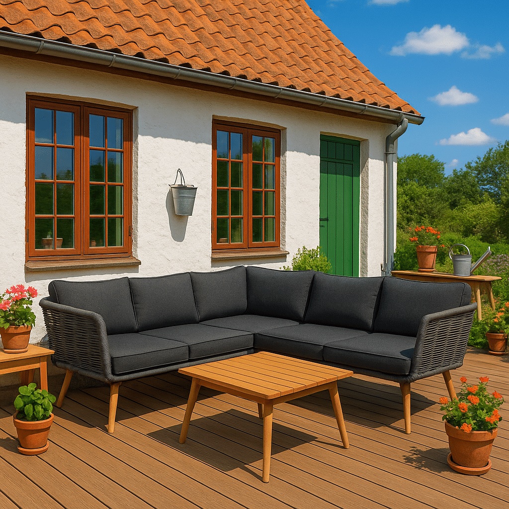 Hjørnesofasæt Norwich De LuxeHjørnesofasæt Norwich De Luxe i stilrent design med Quick Dry hynder, så du slipper for, at tage hynderne ind hver aften hele sommeren. NORWICH DELUXE sæt indeholder HJØRNESOFA og 1 bord. Quick dry foam All weath