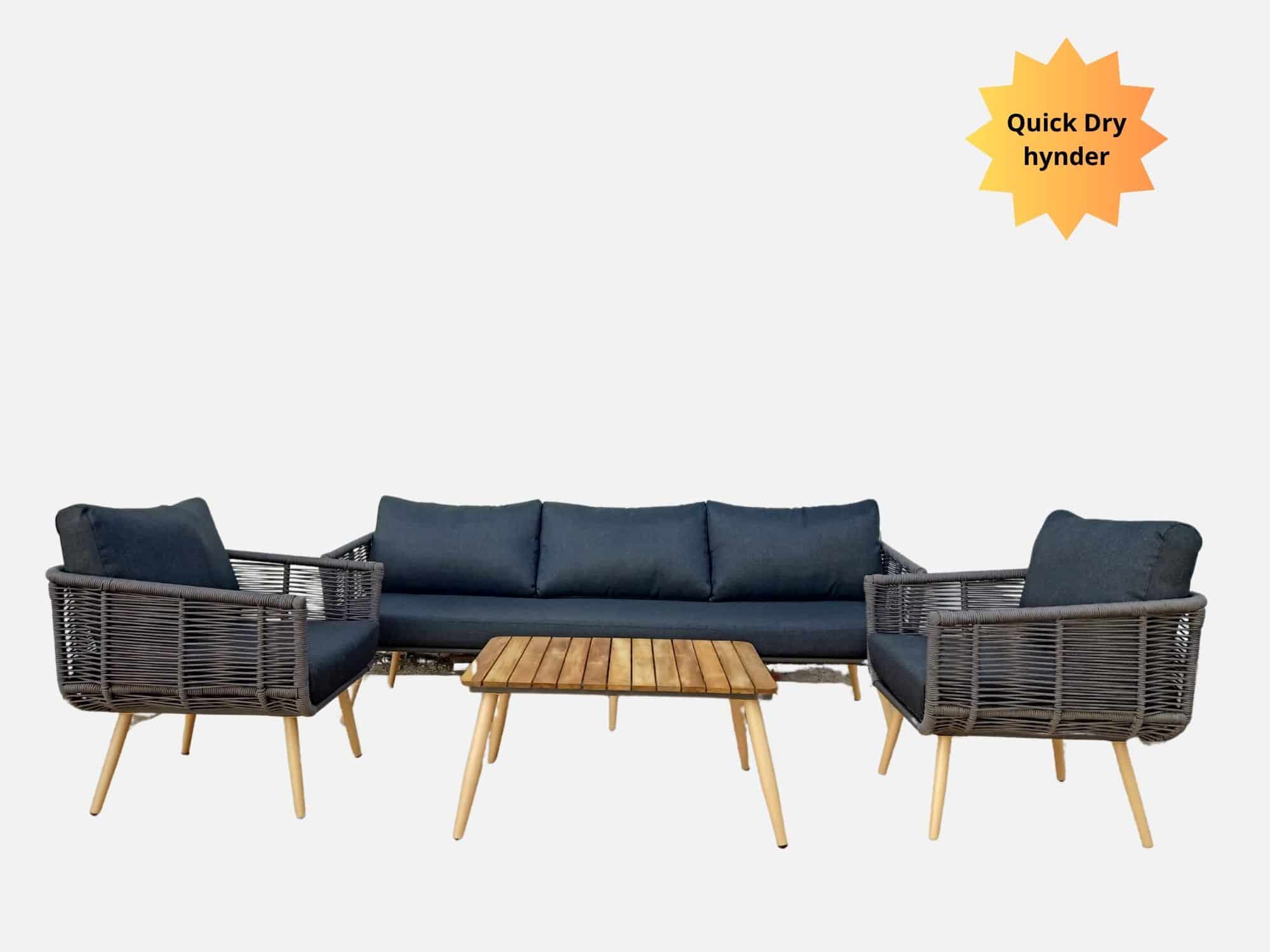– Inkluderer en 2-personers sofa. To komfortable stole og et stilfuldt sofabord
