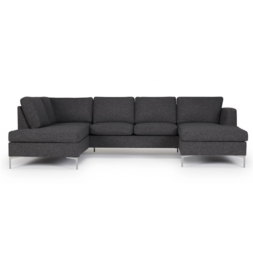 Madrid u-sofa Dyk ned i en verden af luksus med Madrid U-sofaen fra Nordly. En perfekt blanding af moderne design og familiens behov for komfort. Denne sofa er omhyggeligt designet med en sofistikeret. Grå farve i et stof af høj kvalitet. Der lover langva