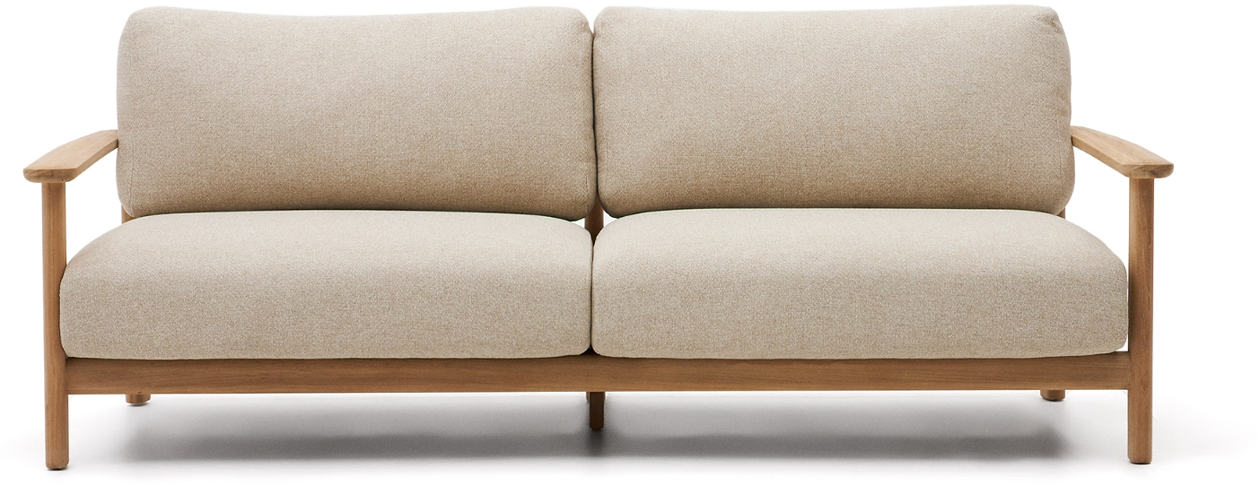 Den sofistikerede Tirant 3-personers sofa fra Kave Home tilfører et strejf af moderne nordisk elegance til ethvert udendørs område. Sofaen er smukt udformet i omfattende teaktræ. Hvilket ikke alene giver den strukturel holdbarhed Men også bidrager til dens