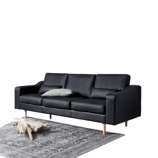Nordic C Elegant sofa fra Nordic C. Sofaen er i elegant sort læder. Sofaen er udført med flotte ben i træ. Som giver sofaen et moderne skandinavisk design. Nordic C producerer alle deres sofaer i Europa. Og alle sofaerne er dansk designet og er derfor af